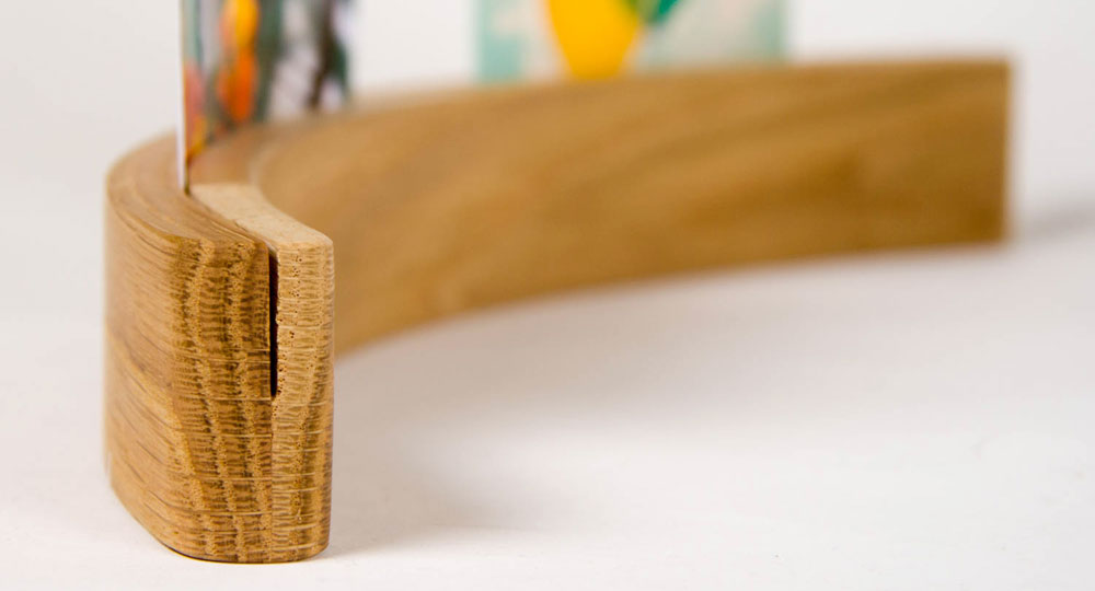 曲線を利用したカードスタンドです。写真やA4書類もたてられます。