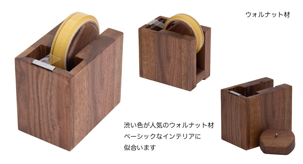 コンパクトなデザインと安定感のある無垢材が使いやすいテープカッターです。