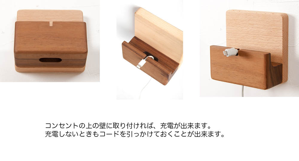 携帯充電時の定位置です。コードを引っ掛けておくことが出来ます。